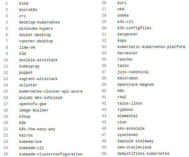 J’ai déjà écrit 12 méthodes pour installer Kubernetes (sur 50 prévues), en m’appuyant sur le travail que j’avais déjà effectué sur mon blog. Les prochains chapitres iront forcément moins vite, à mesure que je découvrirai des outils plus complexes ou exotiques.